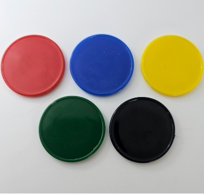 Counters made from food grade plastics with food grade colours. Available in standard colours ex stock in bags of 2500.